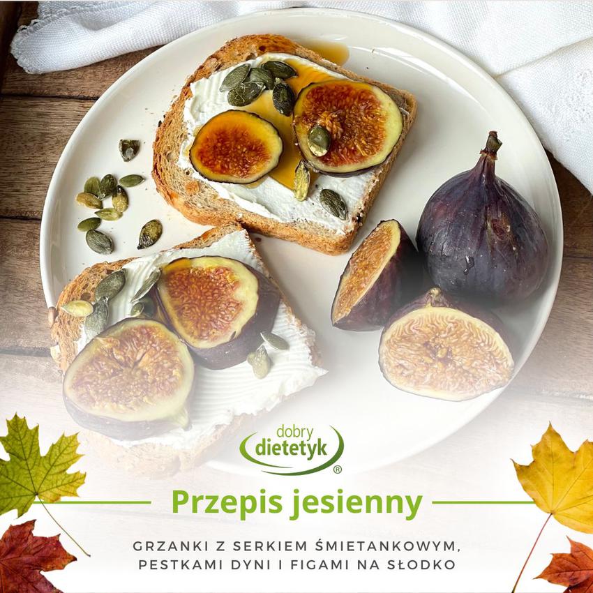 Kromki chleba opiecz na grzanki, a następnie posmaruj je serkiem śmietankowym. Figi umyj, pokrój w plastry i ułóż na pieczywie. Całość skrop miodem lub syropem klonowym i posyp pestkami dyni. Podawaj od razu – najlepiej do porannej kawy ☕💛