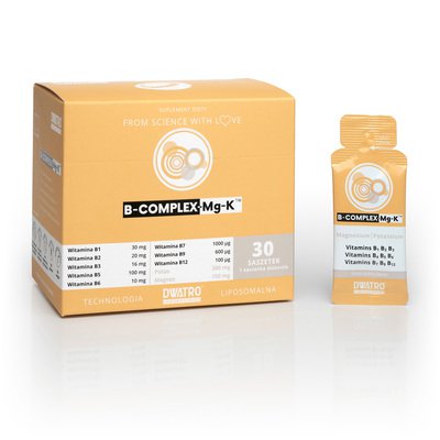 Unikalne połączenie kompleksu witamin B z magnezem i potasem w postaci żelu liposomalnego.