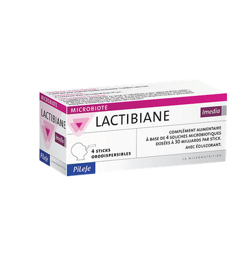 Dzięki wysokiej koncentracji szczepów probiotycznych, pomaga bardzo szybko łagodzić zaburzenia jelitowe i sprzyja utrzymaniu równowagi flory jelitowej. Stosowany w celu złagodzenia przewlekłych zaburzeń trawiennych, takich jak wzdęcia lub zaparcia, a nawet syndrom jelita drażliwego, co zostało udowodnione w badaniu klinicznym. Lactibiane Imedia może być również stosowany w zaburzeniach żołądkowo-jelitowych: dawka może być wtedy większa. Suplement diety opracowany na podstawie badań naukowych.