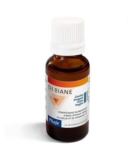 D3 Biane w kroplach to suplement diety na bazie oleju rzepakowego i witaminy D3. Suplement diety zapewnia 100% dziennego zapotrzebowania w witaminę D3, która przyczynia się do utrzymania właściwej struktury kostnej i prawidłowego funkcjonowania systemu odpornościowego.Rekomendowany do suplementacji w:
