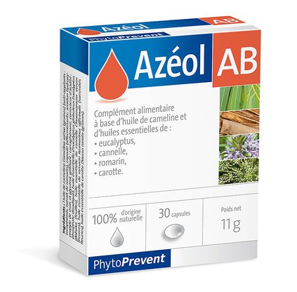 Azeol AB jest suplementem diety opracowanym na bazie oleju z lnicznika siewnego (Camelia sativa) i specjalnej kompozycji olejków eterycznych z eukaliptusa, cynamonu, rozmarynu i nasion marchwi. Zastosowany w produkcji, opatentowany proces Quality Silver, gwarantuje maksymalną jakość i trwałość oleju w okresie przydatności do spożycia.